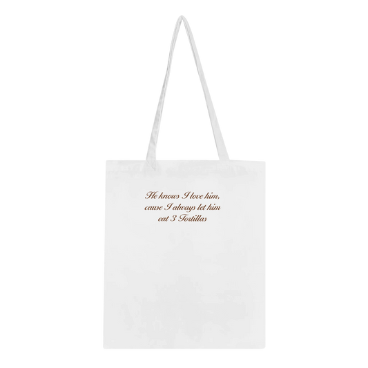 He knows I love him cause, I always let him eat 3 tortillas - Classic Tote Bag